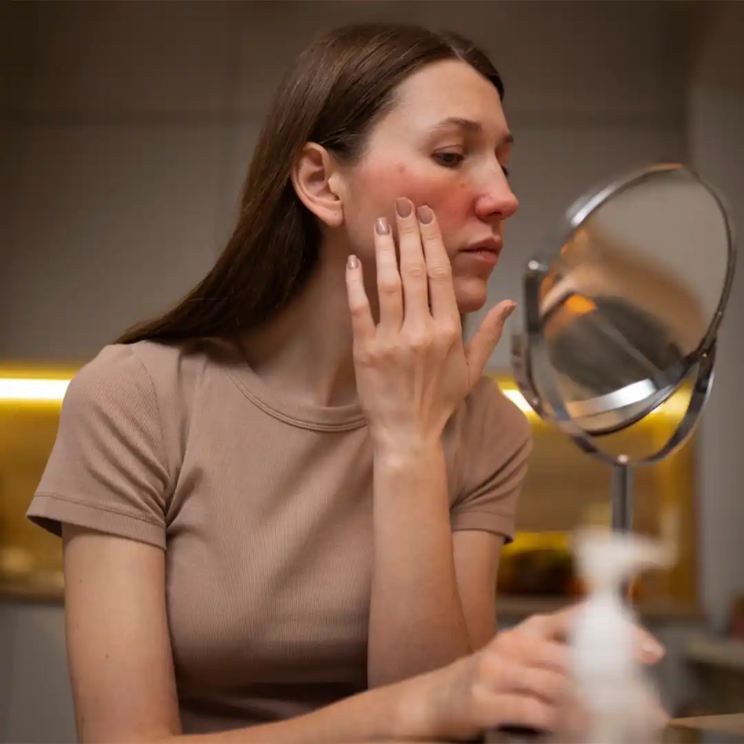 شاركها 0FacebookTwitterPinterestWhatsapp 14 تعاني البشرة الحساسة من ردود فعل أسرع وأقوى مقارنة بباقي أنواع البشرة، مما يجعل أصحابها أكثر عرضة للاحمرار، الحكة، والتهيج عند التعرض لعوامل بسيطة قد لا تؤثر على غيرهم. فهم مشاكل البشرة الحساسة وأسبابها يُعد الخطوة الأولى لاختيار العلاج الصحيح وبناء روتين عناية آمن وفعّال. في هذا المقال، نستعرض أبرز مشاكل البشرة الحساسة، أسباب ظهورها، وأفضل الطرق الطبية والعملية للتعامل معها. فهرسة محتوي المقال Toggle ما هي البشرة الحساسة وكيف يمكن تمييزها؟أبرز مشاكل البشرة الحساسةأسباب مشاكل البشرة الحساسةكيفية علاج مشاكل البشرة الحساسةالمسببات الداخلية للبشرة الحساسةالأسباب الخارجية للبشرة الحساسةالعوامل المساهمةمتى يجب استشارة طبيب الجلدية؟نصائح مهمة للعناية بالبشرة الحساسةالأسئلة الشائعة حول البشرة الحساسةالخلاصة ما هي البشرة الحساسة وكيف يمكن تمييزها؟ البشرة الحساسة هي بشرة تتفاعل بسرعة مع العوامل الخارجية أو بعض مستحضرات العناية، نتيجة ضعف حاجز الجلد. ويمكن تمييزها من خلال مجموعة من العلامات الواضحة التي تظهر بشكل متكرر. أبرز مشاكل البشرة الحساسة إليكِ المشاكل الرئيسية للبشرة الحساسة الاحمرار والالتهاب المتكرر: من أكثر مشاكل البشرة الحساسة شيوعًا ظهور الاحمرار المفاجئ، خاصة بعد غسل الوجه أو استخدام منتجات جديدة. يحدث ذلك نتيجة توسع الأوعية الدموية أو تفاعل الجلد مع مكونات مهيجة. الحكة والشعور بالوخز: قد تشعر البشرة الحساسة بحكة أو وخز خفيف إلى متوسط، خصوصًا في الأجواء الباردة أو بعد التعرض للماء الساخن. هذا العرض يشير غالبًا إلى ضعف حاجز البشرة وفقدان الرطوبة. الجفاف والتقشر: تعاني البشرة الحساسة كثيرًا من الجفاف، حتى وإن لم تكن جافة بطبيعتها. يؤدي نقص الدهون الطبيعية إلى تقشر الجلد وظهور ملمس خشن غير مريح. ظهور الطفح الجلدي: في بعض الحالات، قد تظهر بقع أو طفح جلدي خفيف نتيجة استخدام منتجات غير مناسبة أو التعرض لمثيرات مثل العطور أو الأقمشة الخشنة. التفاعل مع مستحضرات العناية: تتفاعل البشرة الحساسة بسرعة مع المنتجات التي تحتوي على كحول، عطور صناعية، أو أحماض قوية، مما يؤدي إلى تفاقم مشاكل البشرة الحساسة بدلًا من علاجها. أسباب مشاكل البشرة الحساسة تتنوع أسباب مشاكل البشرة الحساسة بين عوامل وراثية وأخرى مكتسبة. وقد تتداخل هذه العوامل معًا لتزيد من شدة الأعراض. من أبرزها ضعف الحاجز الجلدي، التغيرات المناخية، الإفراط في التقشير، استخدام منتجات قاسية، والتعرض المستمر للتوتر أو قلة النوم. كيفية علاج مشاكل البشرة الحساسة لمعالجة مشاكل البشرة الحساسة بفاعلية، يعتمد العلاج على مجموعة من الخطوات الأساسية: اختيار منظف لطيف: العلاج يبدأ من التنظيف. يجب استخدام غسول خالٍ من العطور والكحول، بتركيبة لطيفة تحافظ على الزيوت الطبيعية ولا تسبب جفافًا أو تهيجًا. الترطيب المنتظم: الترطيب خطوة أساسية في علاج مشاكل البشرة الحساسة. يُنصح باستخدام مرطبات تحتوي على السيراميدات، الجلسرين، أو البانثينول لدعم حاجز البشرة وتقليل التهيج. تجنب المكونات المهيجة: من الضروري الابتعاد عن المنتجات التي تحتوي على العطور الصناعية، الكبريتات القاسية، الريتينول بتركيزات عالية، أو الأحماض المقشرة القوية دون استشارة مختص. استخدام واقي الشمس يوميًا: الأشعة فوق البنفسجية قد تزيد من حساسية البشرة وتفاقم الالتهابات. لذلك، يُفضل استخدام واقي شمس معدني بتركيبة خفيفة ومناسبة للبشرة الحساسة. تقليل التقشير: يجب تقليل عدد مرات التقشير إلى الحد الأدنى، والاكتفاء بمرة واحدة أسبوعيًا إن لزم الأمر، مع استخدام مقشرات لطيفة جدًا أو التوقف تمامًا عند تهيج البشرة. وبعد التعرف على مشاكل البشرة الحساسة وأسبابها وكيفية علاجها، يبقى السؤال الأهم: ما هو الروتين اليومي الصحيح الذي يساعد على تهدئة البشرة وحمايتها من التهيج؟ هذا ما نوضحه بالتفصيل في مقالنا التالي أفضل رو